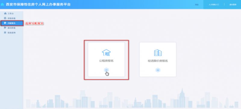 第四步:选择“分配报名”,点击“公租房报名”选项,进行公租房报名。