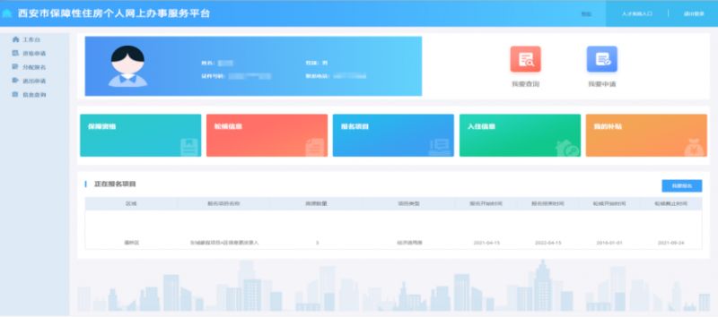 第三步:登录完成后,页面跳转至西安市保障性住房个人网上办事服务平台工作台。
