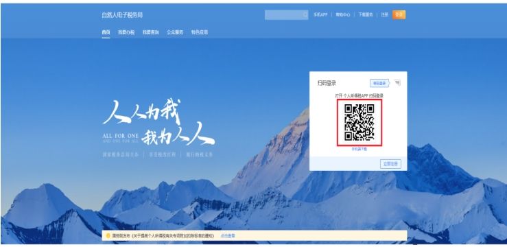 使用手机端下载“个人所得税”APP按提示注册/登录后扫描网页二维码授权登录