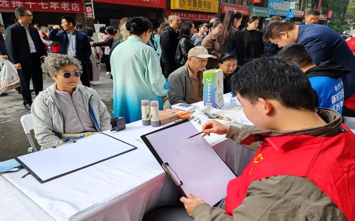 便民服务暖人心,聚焦居家需求。西安市金丝带提供“银发修剪”;陕西交控现场维修小家电;中国移动灞桥分公司免费贴手机膜;西安啄春泥团队为老年人手绘结婚照,用画笔定格时光浪漫,从细节中传递温暖。